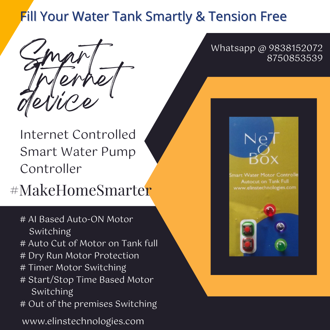 NET-O-MOTOR is a NET-O-BOX Series for Electric Water Pump Motor Controller with AI IOT based Auto ON, Auto OFF at Tank Full and Dry Run Protection.