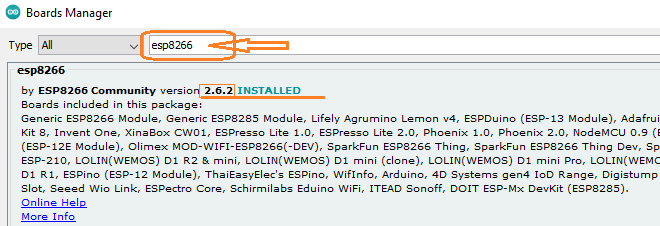 Step4: Now in the search, type "esp8266".